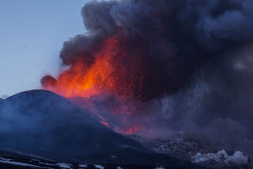 意大利陆地上的亚宁山脉延伸到西西里岛,在东北部地势尤其高,那里的埃特纳(Etna)火山是欧洲最活跃的火山。埃特纳火山(Mount Etna)拉丁语作Aetna,西西里语作蒙吉贝洛(Mongibello)。埃特纳火山下部是一个巨大的盾形火山,上部为300米高的火山渣锥,是有史记载以来喷发历史最为悠久的火山,其喷发史可以上溯到公元前1500年,埃特纳火山一直处于活动状态,距火山几公里远就能看到火山上不断喷出的气体呈黄色和白色的烟雾状,并伴有蒸气喷发的爆炸声。