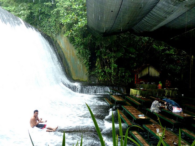 夏天的阳光总让人有种燥热,有时甚至会让人有些厌烦。在炎热的夏季,站在水上用餐绝对是一种解暑的绝佳方式。在位于菲律宾吕宋岛南部的旅游胜地埃斯库德罗庄园里,有一家奇特的瀑布餐厅,在这里用餐的游客们既可以欣赏飞流直下的瀑布,还能品尝风味独特的菲律宾美食。只要你想,还可以在水上嬉戏。站在水上用餐,感受着潺潺的流水从脚下经过,冲洗着一天的疲惫,与大自然来个肌肤之亲,零距离接触。