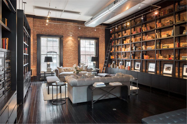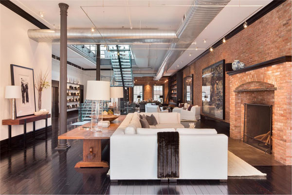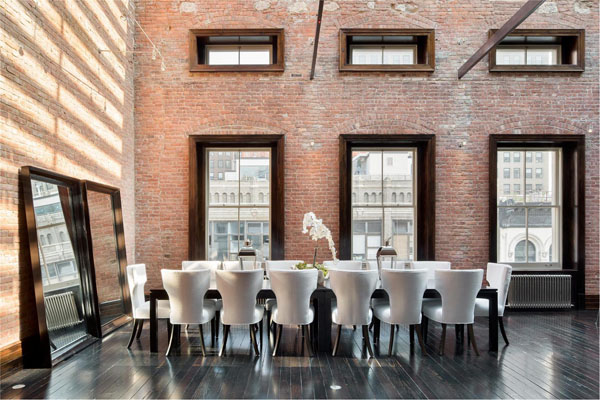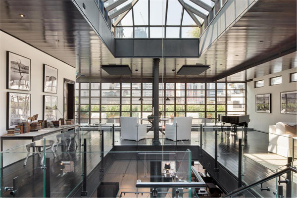 这个30000平方英尺个公寓,在TriBeCa大厦6楼。上下两层楼,与天花板的高度,从12英尺,拥有巨大的窗户和天窗,能让人不管在房间那个位置都能沐浴到充足的阳光。