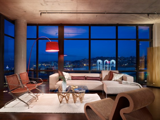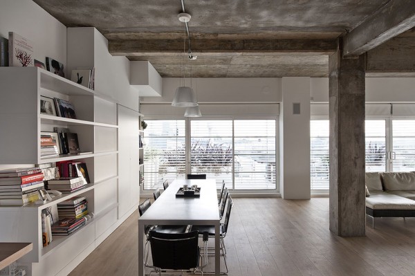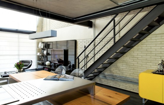以色列的设计师Ando-Studio,创建了一个开放的、不拘一格的自由空间,很注意细节。空间上有许多书、照片,和艺术品,他们安装的大窗户,让内部采光非常好。Loft设计最引人注目的是木材、银色金属、玻璃,和大量的皮革。冷暖色调搭配使用,从浅棕到暗海军蓝色。所有这一切结合在一起,便是这样一个既有工业时代旧的质感却又新颖时尚的Loft。