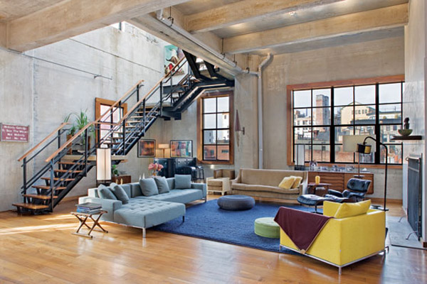 最初,艺术家与设计师们利用废弃的工业厂房,从中分隔出居住、工作、社交、娱乐、收藏等各种空间,在空旷的厂房里,他们构造各种生活方式,创作行为艺术,或者办作品展。他们把一层临街的房间改造成商店,出售自己的作品。因为没有多余的钱去装修如此巨大的房间,于是这种工业建筑本身的特征被充分地裸露在外面,与橱窗和商品之间产生了巨大的视觉反差,这种视觉矛盾产生了令人好奇的效果。因为个性、前卫,这些厂房广受年轻人青睐。在上世纪90年代以后,Loft在很多国家都开始成为一种艺术时尚。 现在国内,北京的798艺术区,昆明的创库,上海的田子坊、M50,大连的15库,杭州的LOFT49等都是有名的Loft艺术区。在《阳光半透设计餐厅的LOFT风潮》介绍了一些Loft设计风格的餐厅。这里,则主要介绍Loft设计的公寓。