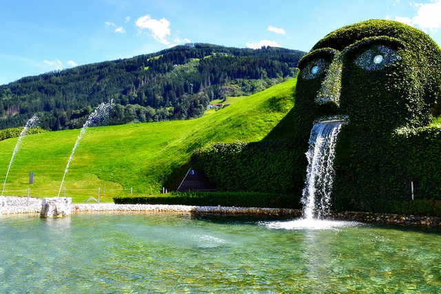在奥地利西部蒂罗尔州首府因斯布鲁克东行十几英里处有一个名为瓦腾斯(Wattens)的小镇,这里地处偏僻的阿尔卑斯山麓,人口也仅仅几千人,但每天却有成千上万的游客蜂拥而来,为的是看看那个造型怪异的阿尔卑斯山巨人。这个巨人匍匐在一个山头,两只水晶大眼在阳光的照射下闪烁着一种奇异的光彩,从它的嘴巴里奔涌而出的喷泉落到了前面的湖中,发出了巨大的咆哮之声。这里就是全球著名的水晶制造商——施华洛世奇总部。