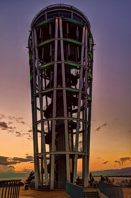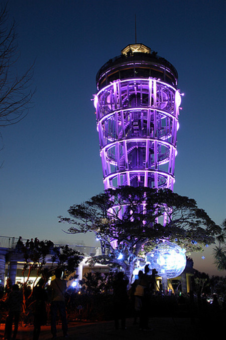 Enoshima Lighthouse, Japan——In 2003 the Enoshima lighthouse in Japan was renovated, the stunning results of which you can see in the photo above. The spiral staircase to the top is surrounded only by a steel frame which is lit in different colors that change throughout the night, making it pretty hard to ignore. it sits on Enoshima island, a tiny piece of land just off the coast of Japan.