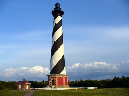cape hatteras light, u.s.——This Lighthouse was raised in 1870, in order to replace the former one which was criticized by sailors as being too little. Because Cape Hatteras measures no less than 60.50 meters, it is ranked as the tallest lighthouse in America and one of the tallest in the world. It is also renowned for being often hit by hurricanes. Today, this symbol of California is in danger of falling into Ocean because of beach erosion. There were many debates on whether to move it or not, but no decision has been taken yet.