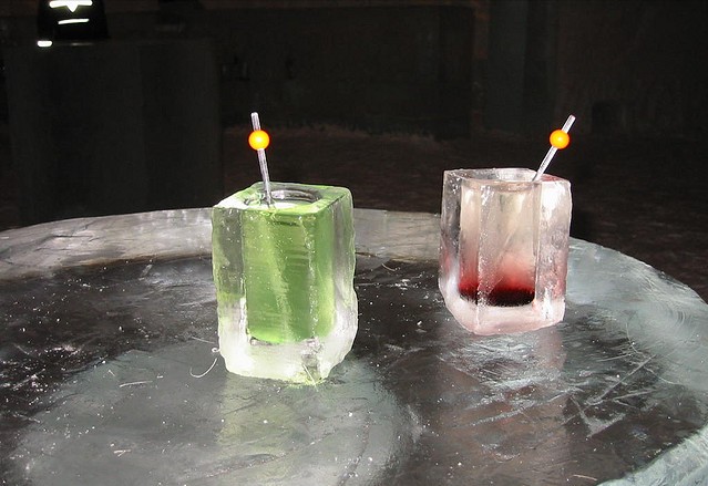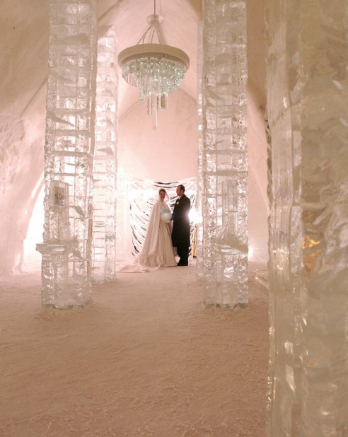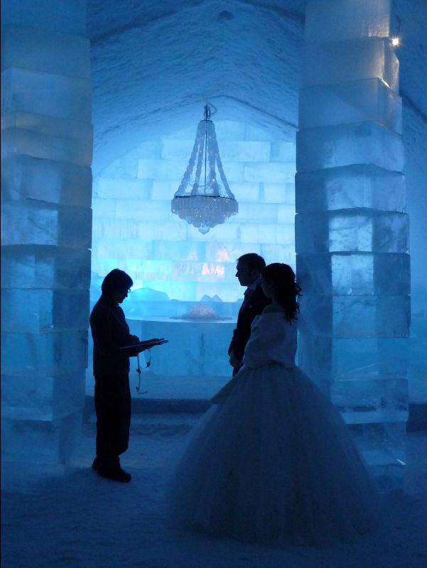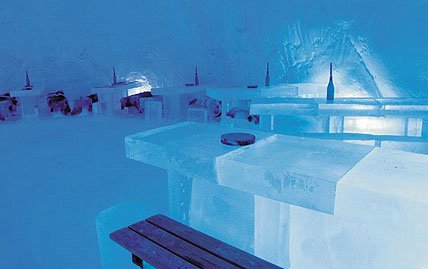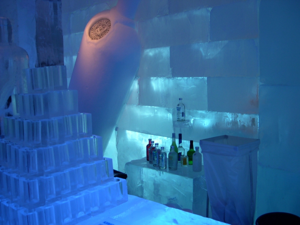 “惟一”是冰旅馆和爱情之间最大的共通点,也是冰旅馆的艺术特质,或许这正是冰旅馆吸引无数对情侣前来这里结婚、度蜜月的原因吧。在如水晶般的世界里品尝味道强劲的ABSOLUTE伏特加,设计优雅的酒瓶,闪烁的灯光,都会是永恒的纪念。