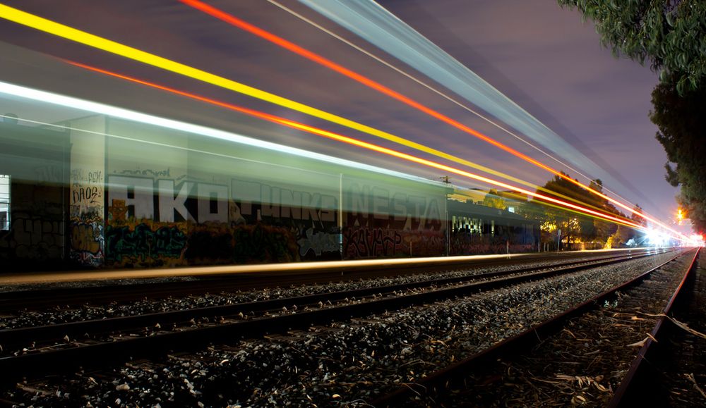 美国摄影师Aaron Durand 拍摄了一组十分有趣的相片,他用相机捕抓快速穿行而过的火车所形成的光影轨迹。这些作品构成的景象就像是经过精心安排的光影涂鸦一样,动感而别致。