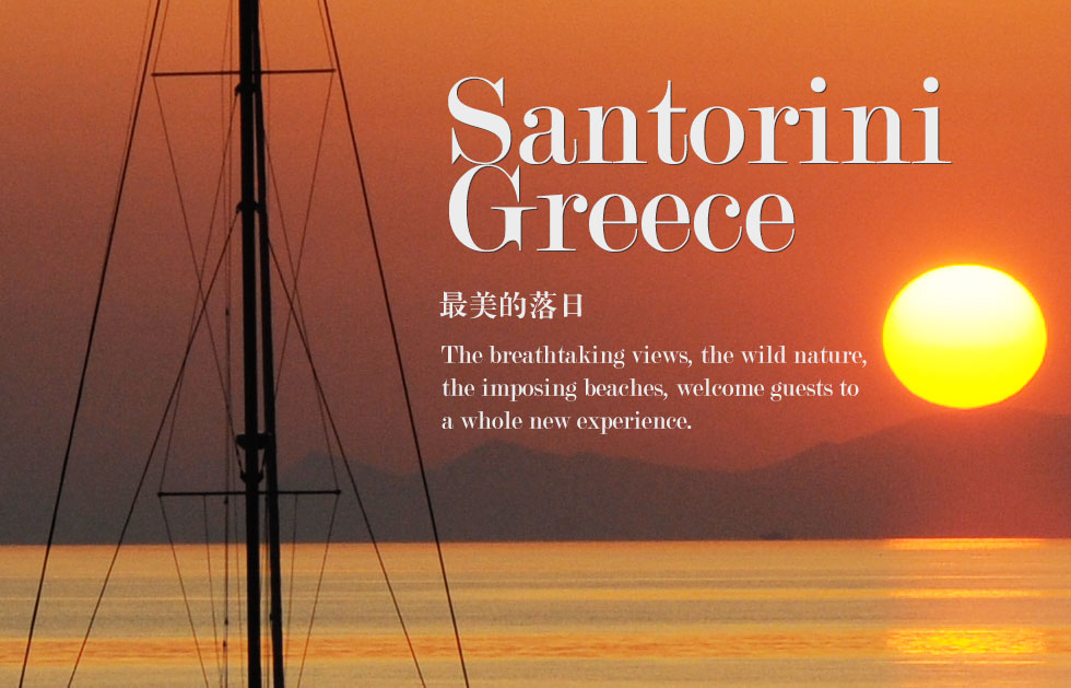 圣特里尼岛是爱琴海众多岛屿中最富盛名的一个。白天,在海湾内的沙滩游泳,晒日光浴,享受大自然的恩赐。黄昏,找一块礁岩,欣赏海上最美的落日。余辉洒在海边陡峭的山崖上,发出斑驳的红褐色,山崖顶端一片白色房屋,小巧明丽。当耀眼的阳光慢慢变成橙红色的火球,从海平线上掉下去的一瞬间,人们用欢呼声送走阳光海滩一天的快乐时光。
