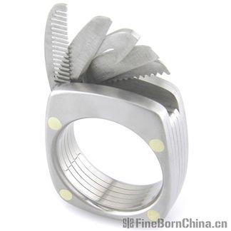 相当独特的一个戒指,堪比瑞士军刀,厚度只有9毫米的小小的指环内,隐藏着多个有用的工具,包括开瓶器、直片刀、小梳子、锯木锯齿刀和尼龙布锯齿刀。你会惊讶的发现这个戒指是