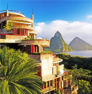 在东加勒比海的安斯沙塔内海滩附近,Jade Mountain酒店可谓是圣卢西亚境内最具浪漫气息、最令人难以置信的度假胜地,在《Travel Leisure》杂志09年发布的最佳酒店TOP100中,它以97.5的用户